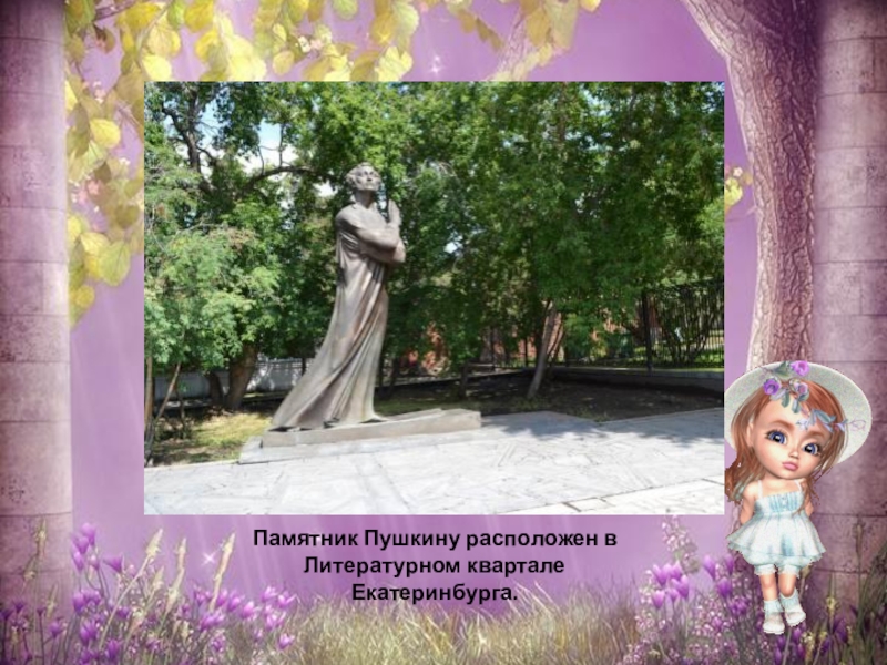Слайд 35Памятник Пушкину расположен в Литературном квартале Екатеринбурга.