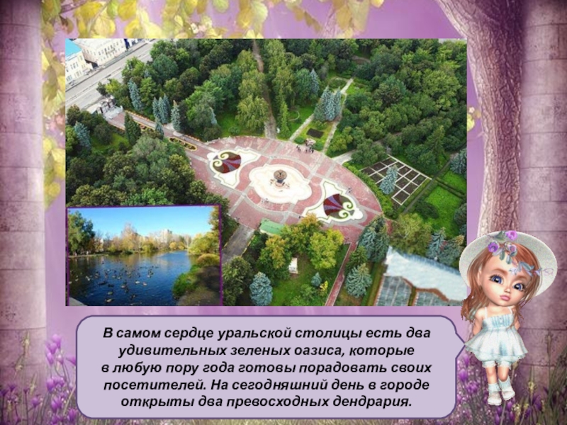 Слайд 17В самом сердце уральской столицы есть два удивительных зеленых оазиса, которые в любую