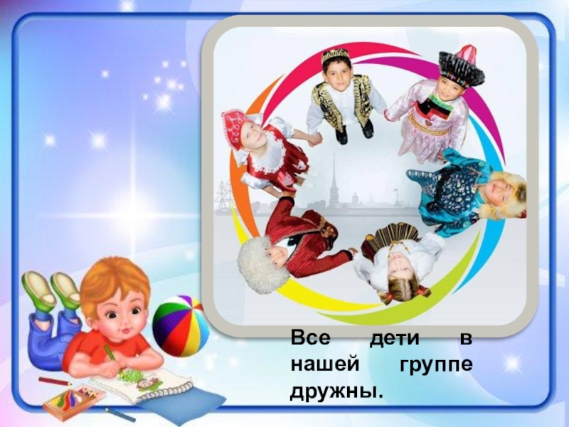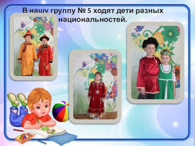Слайд 7В нашу группу № 5 ходят дети разных национальностей.