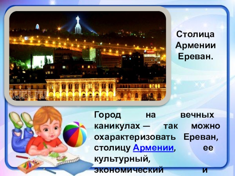 Столица Армении Ереван.Город на вечных каникулах — так можно охарактеризовать Ереван, столицу Армении, ее культурный, экономический и политический центр