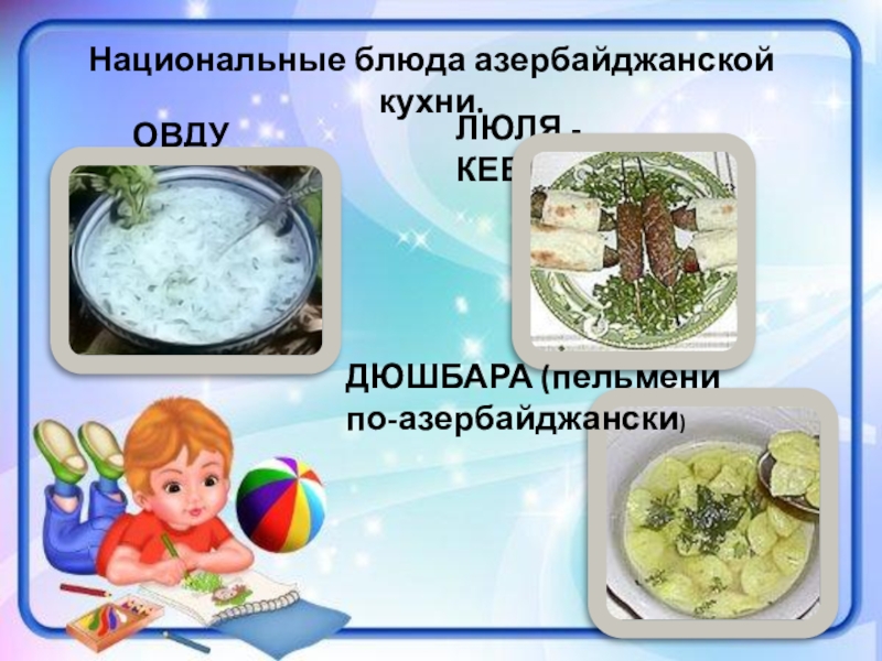 ОВДУХНациональные блюда азербайджанской кухни.ЛЮЛЯ - КЕБАБДЮШБАРА (пельмени по-азербайджански)