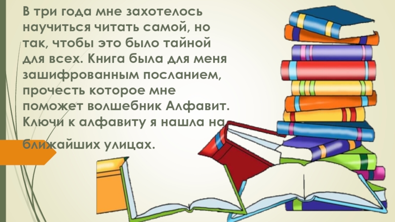 Слайд 4В три года мне захотелось научиться читать самой, но так, чтобы