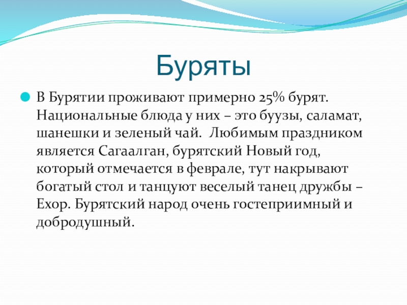В Бурятии проживают примерно 25% бурят. Национальные блюда у них –