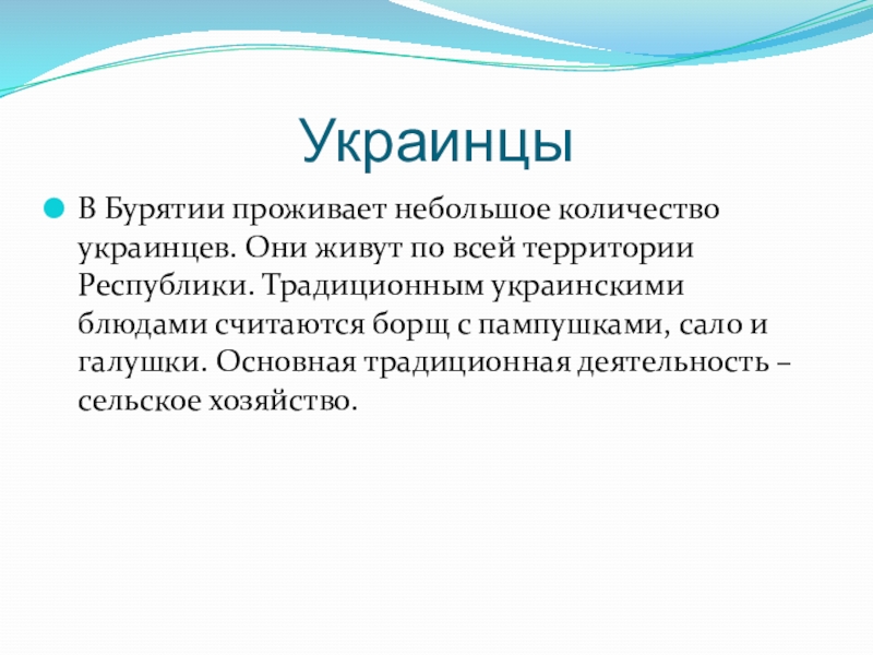 В Бурятии проживает небольшое количество украинцев. Они живут по всей территории