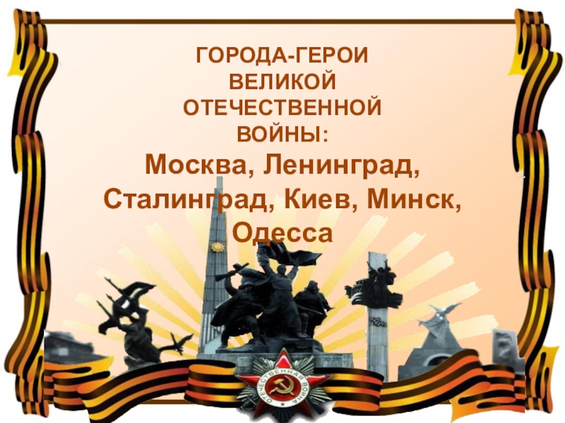 Москва, Ленинград, Сталинград, Киев, Минск, Одесса, Севастополь, Новороссийск, Керчь, Тула, Мурманск, Смоленск и крепость – герой Брест.