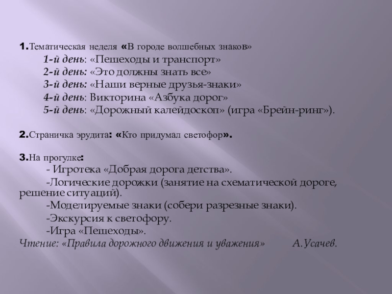 Формирование у детей навыков осознанного безопасного поведения на улицах города.