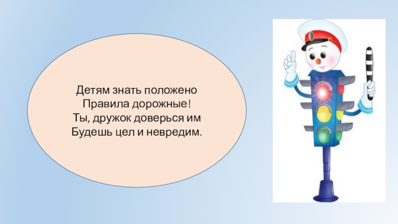 Детям знать положеноПравила дорожные!Ты, дружок доверься им Будешь цел и невредим.
