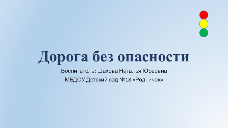 Дорога без опасностиВоспитатель: Шахова Наталья ЮрьевнаМБДОУ Детский сад №18 «Родничок»