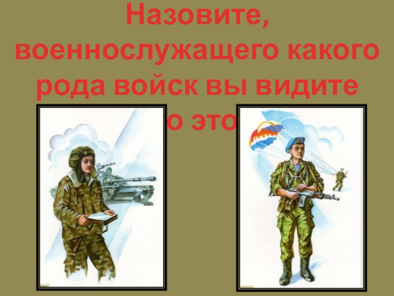 Слайд 21Назовите, военнослужащего какого рода войск вы видите (Кто это?):