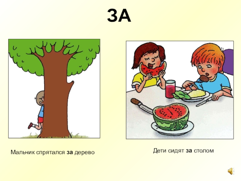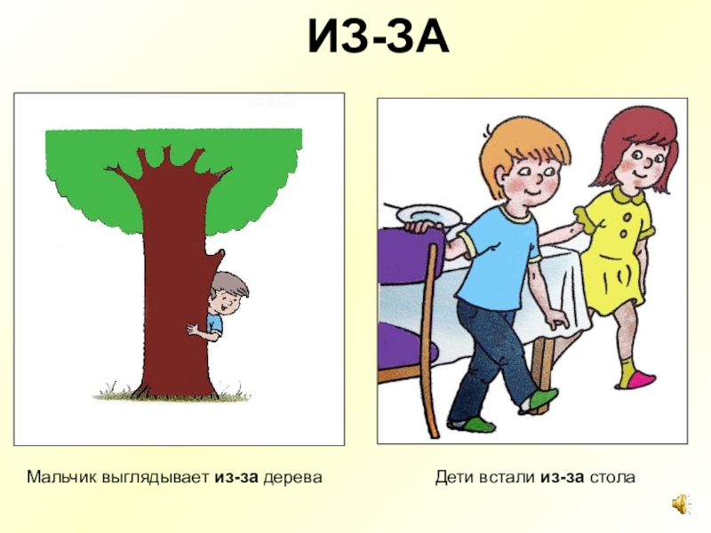 ИЗ-ЗАМальчик выглядывает из-за дереваДети встали из-за стола
