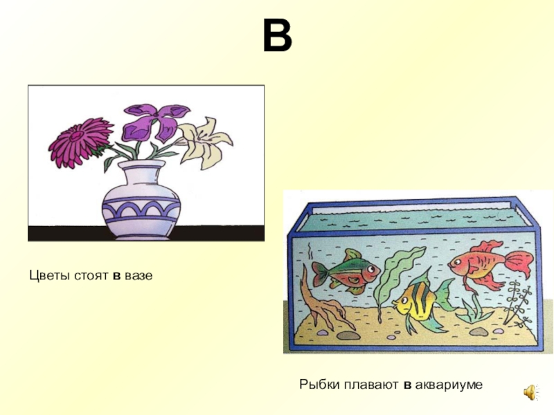 ВЦветы стоят в вазеРыбки плавают в аквариуме
