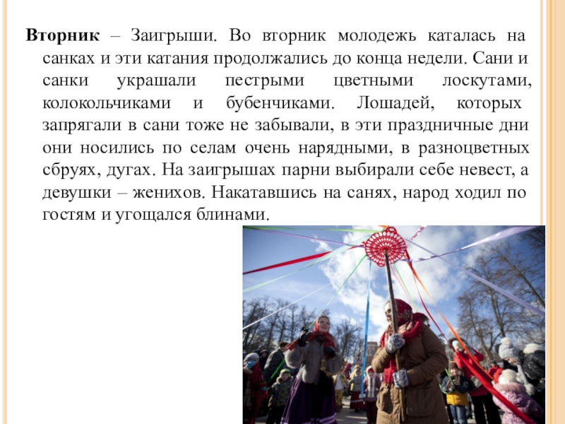 Слайд 7Вторник – Заигрыши. Во вторник молодежь каталась на санках и эти