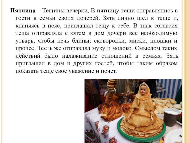Слайд 10Пятница – Тещины вечерки. В пятницу тещи отправлялись в гости в