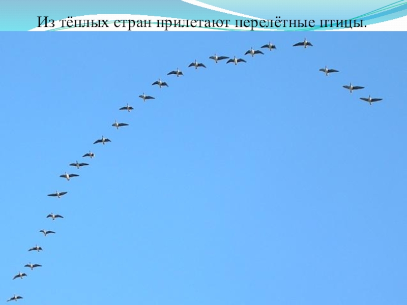 Слайд 10Из тёплых стран прилетают перелётные птицы.