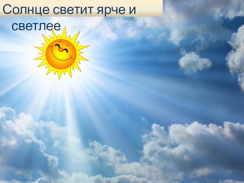 Слайд 4Солнце светит ярче и светлее