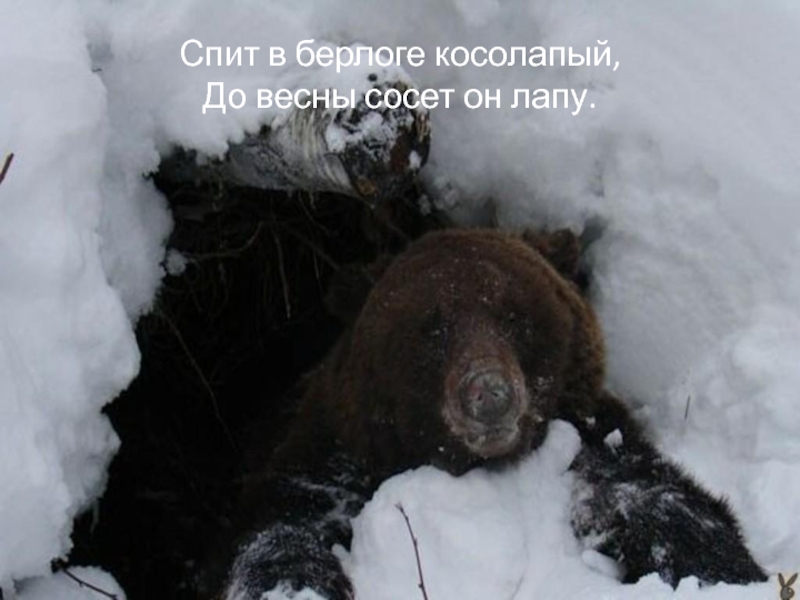 Слайд 10Спит в берлоге косолапый, До весны сосет он лапу.