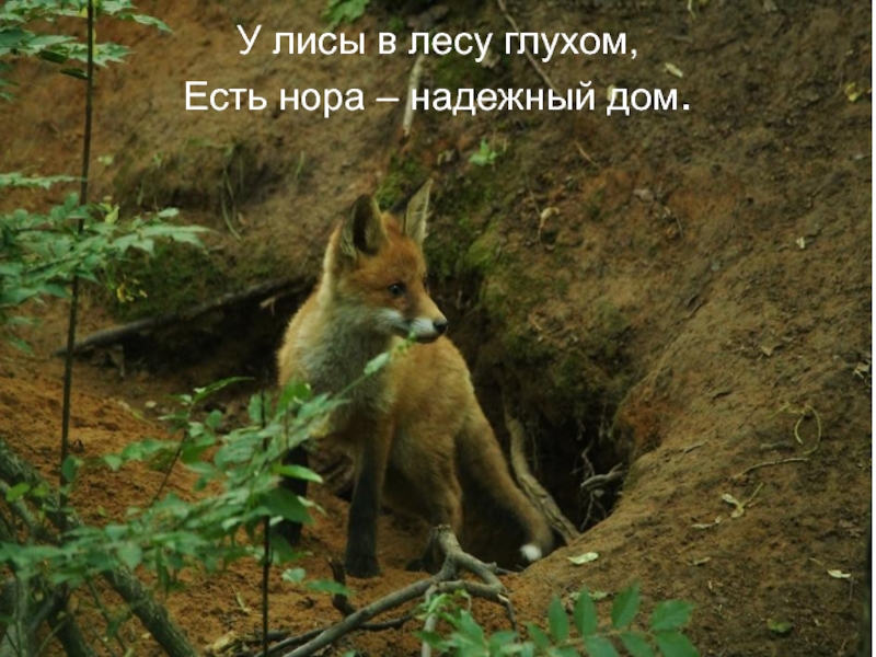 Слайд 8У лисы в лесу глухом, Есть нора – надежный дом.