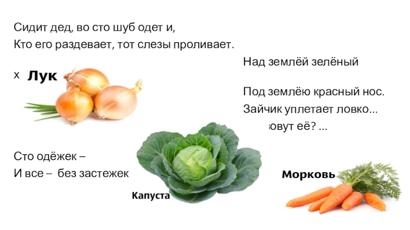 Сидит дед, во сто шуб одет и,Кто его раздевает, тот слезы проливает.