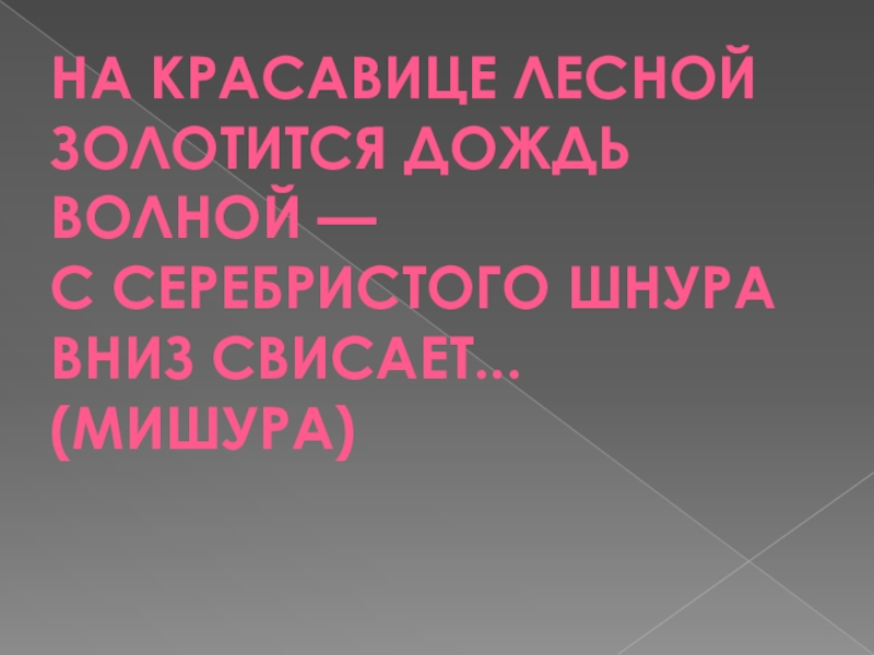 На красавице леснойЗолотится дождь волной —С серебристого шнураВниз свисает...
