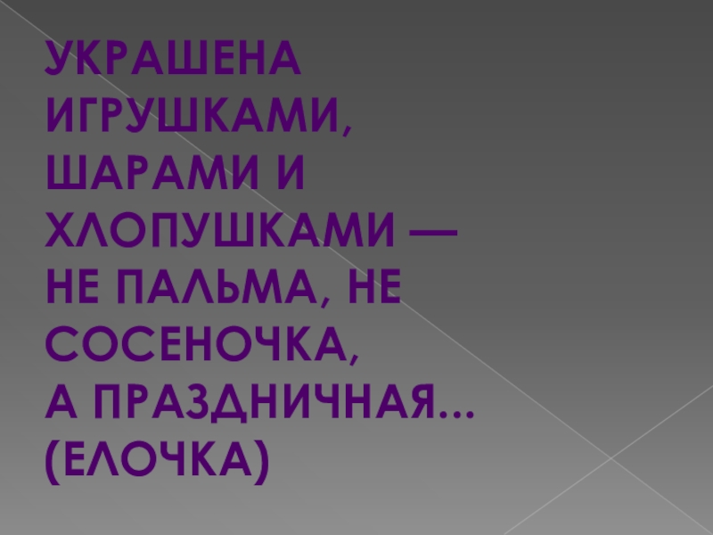 Украшена игрушками,Шарами и хлопушками —Не пальма, не сосеночка,А праздничная...