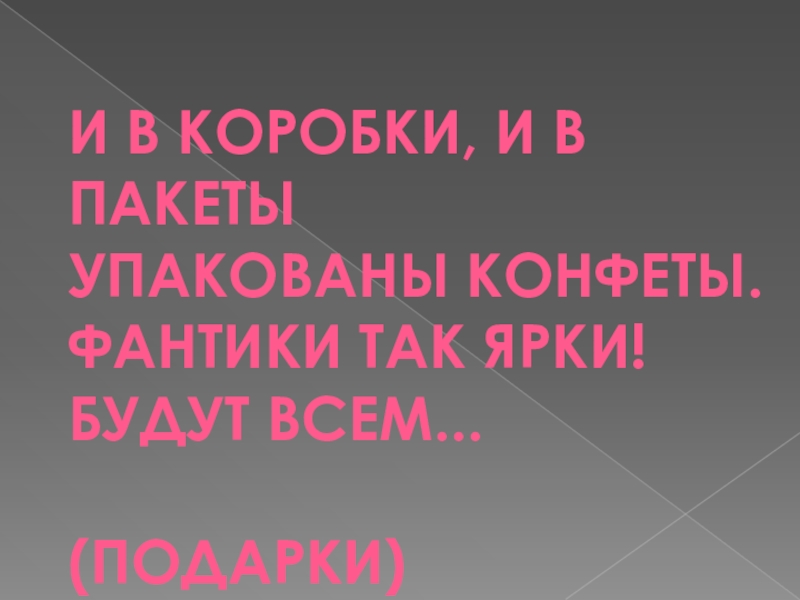 И в коробки, и в пакетыУпакованы конфеты.Фантики так ярки!Будут всем...