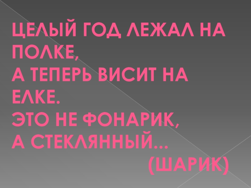 Целый год лежал на полке,А теперь висит на елке.Это не фонарик,А стеклянный...
