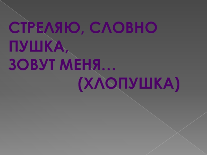 Стреляю, словно пушка,Зовут меня…         (хлопушка)