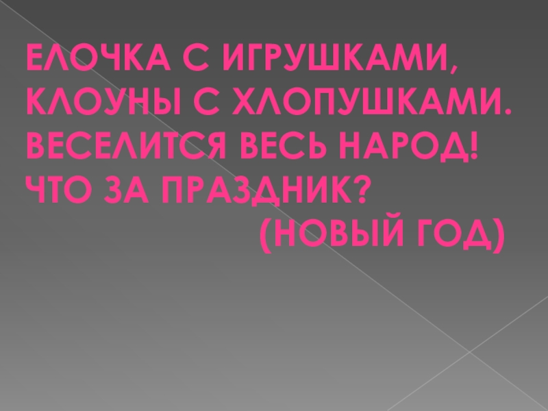 Елочка с игрушками,Клоуны с хлопушками.Веселится весь народ!Что за праздник?