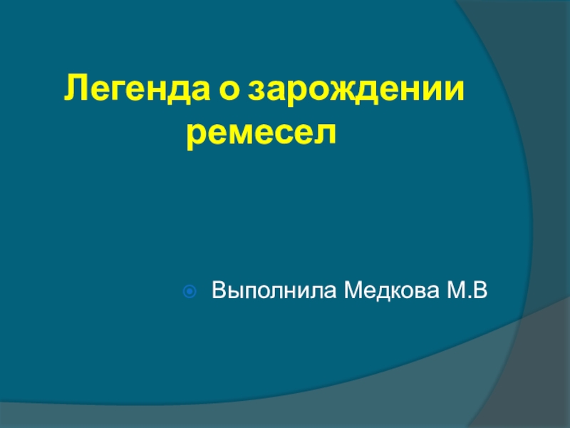 Легенда о зарождении ремеселВыполнила Медкова М.В