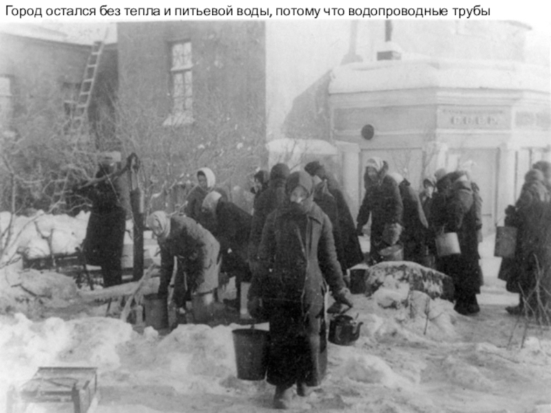 Слайд 9Город остался без тепла и питьевой воды, потому что водопроводные трубы