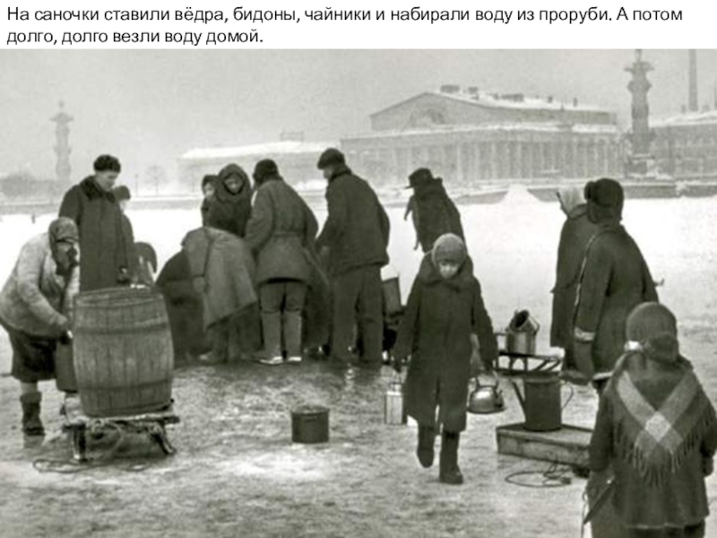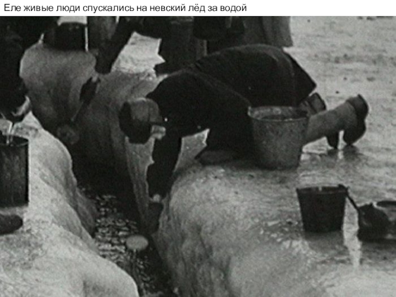 Слайд 10Еле живые люди спускались на невский лёд за водой