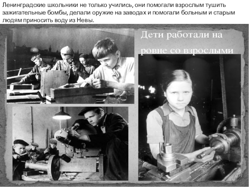 Слайд 25Ленинградские школьники не только учились, они помогали взрослым тушить зажигательные бомбы,