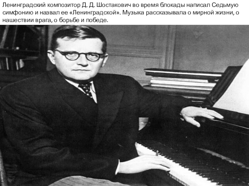 Слайд 22Ленинградский композитор Д. Д. Шостакович во время блокады написал Седьмую симфонию