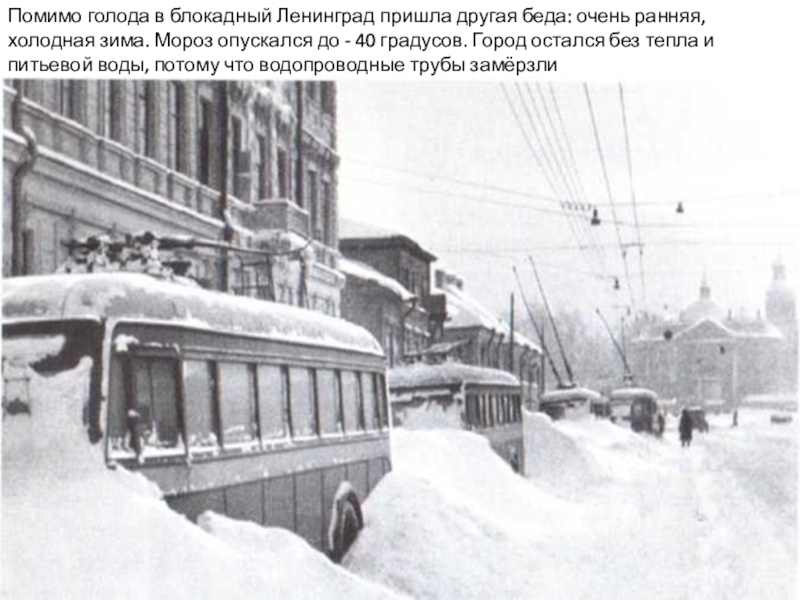 Слайд 8Помимо голода в блокадный Ленинград пришла другая беда: очень ранняя, холодная