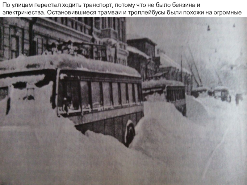Слайд 14По улицам перестал ходить транспорт, потому что не было бензина и