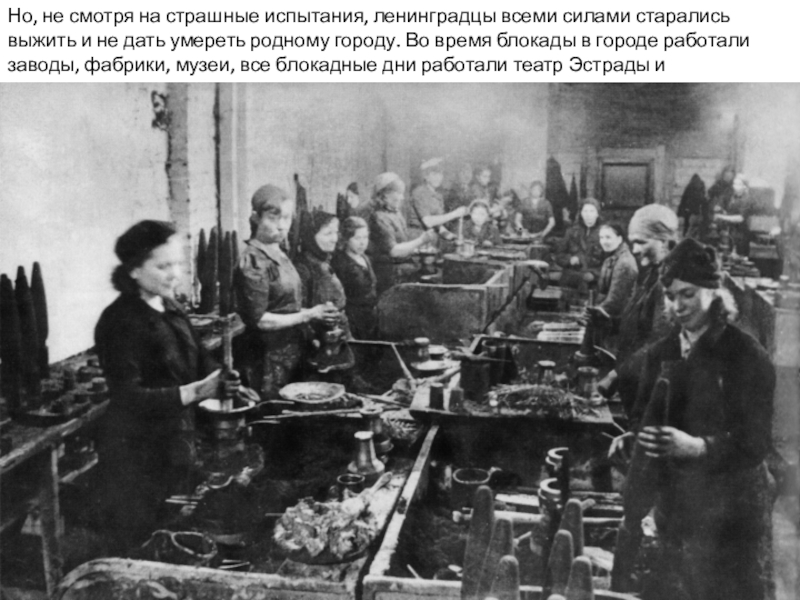 Слайд 20Но, не смотря на страшные испытания, ленинградцы всеми силами старались выжить