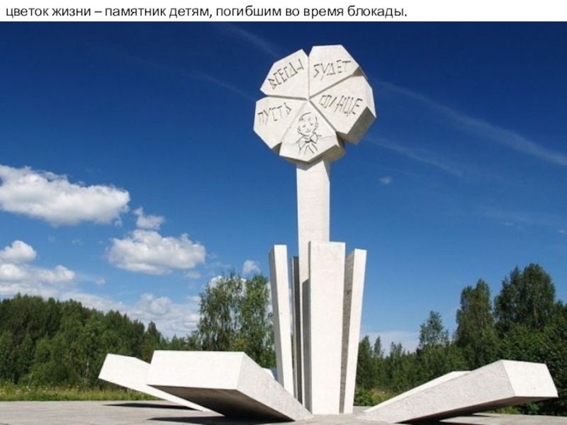 Слайд 30цветок жизни – памятник детям, погибшим во время блокады.