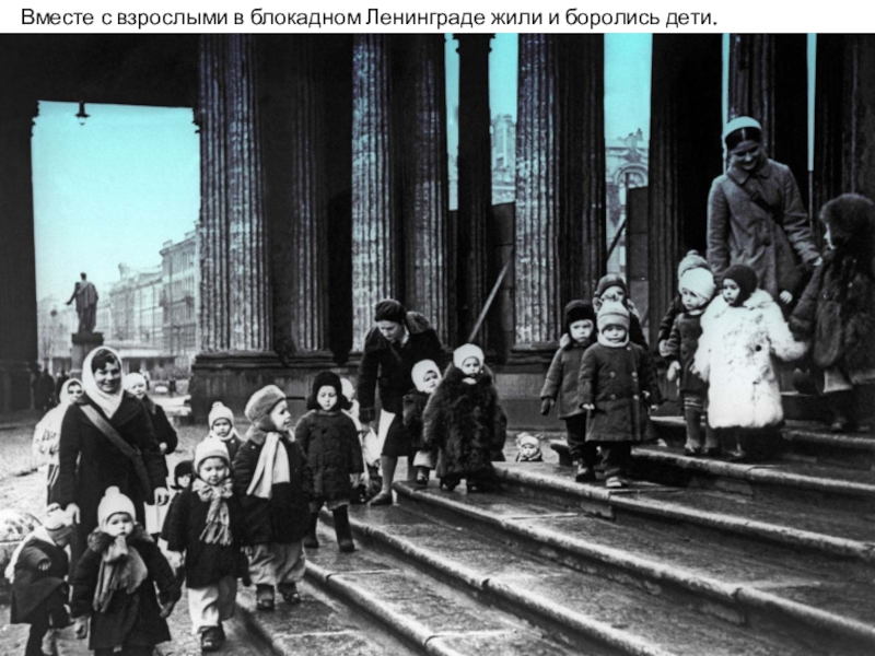 Слайд 23Вместе с взрослыми в блокадном Ленинграде жили и боролись дети.