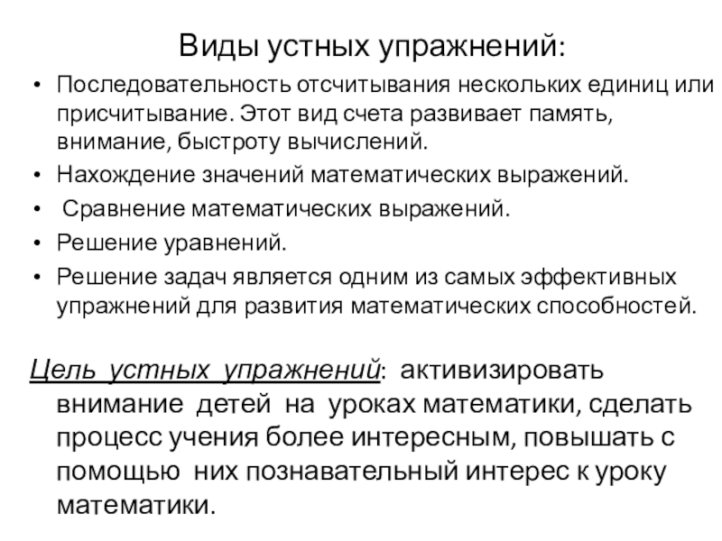 Развитие познавательного интереса младших школьников посредством устных упражнений на уроках математике