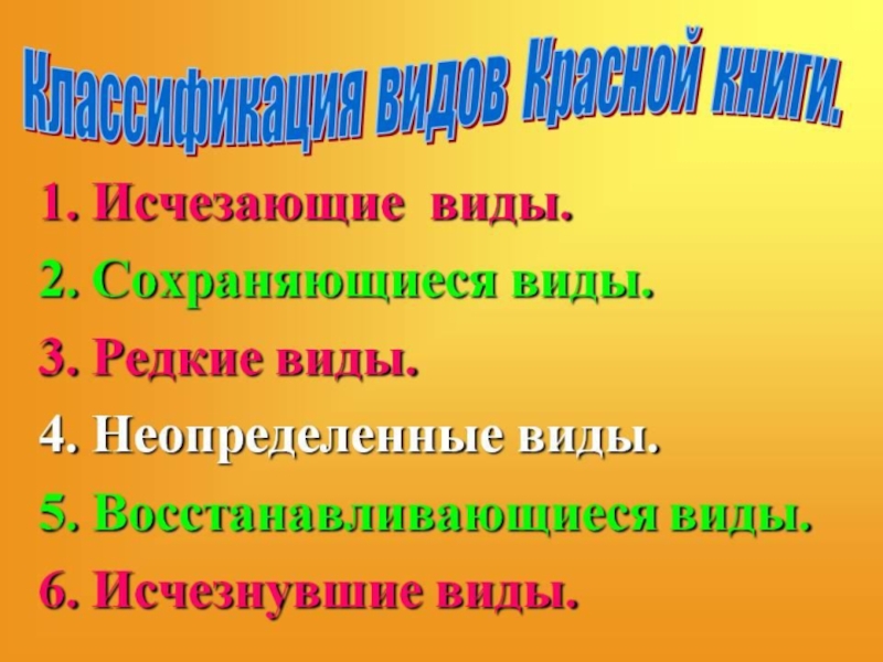 На желтых листах— уязвимые виды.