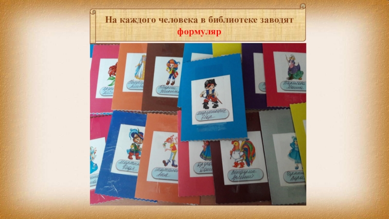 Слайд 6На каждого человека в библиотеке заводят формуляр