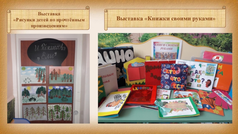 Выставка «Рисунки детей по прочтённым произведениям»Выставка «Книжки своими руками»