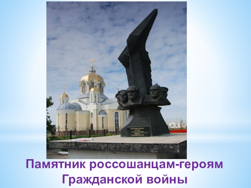 Слайд 12Памятник россошанцам-героям Гражданской войны