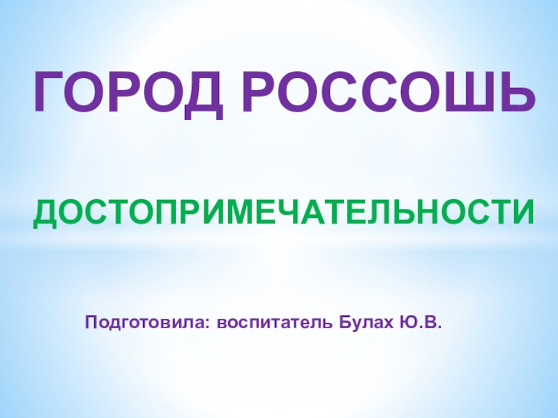 Подготовила: воспитатель Булах Ю.В.ГОРОД РОССОШЬ  ДОСТОПРИМЕЧАТЕЛЬНОСТИ