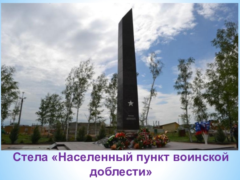 Слайд 9Стела «Населенный пункт воинской доблести»