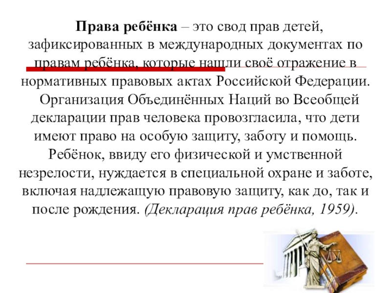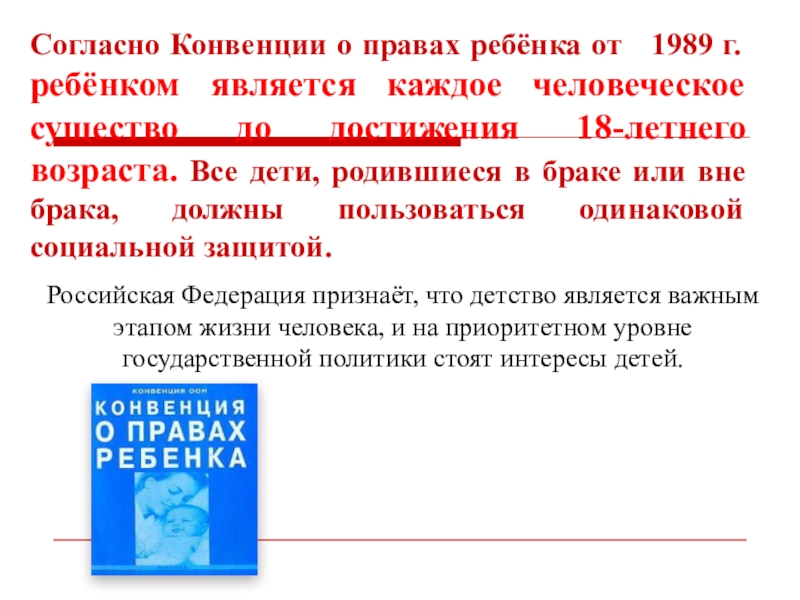 Российская Федерация признаёт, что детство является важным этапом жизни человека, и на приоритетном уровне государственной политики стоят интересы детей.
