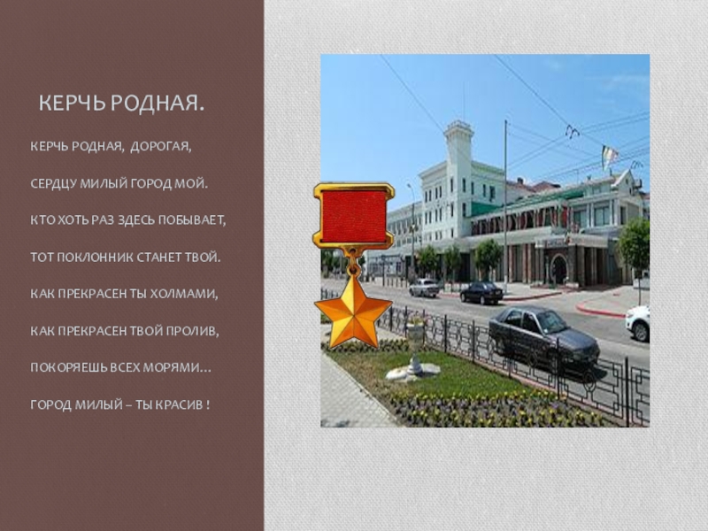 КЕРЧЬ РОДНАЯ. КЕРЧЬ РОДНАЯ, ДОРОГАЯ, СЕРДЦУ МИЛЫЙ ГОРОД МОЙ. КТО ХОТЬ РАЗ ЗДЕСЬ ПОБЫВАЕТ, ТОТ ПОКЛОННИК