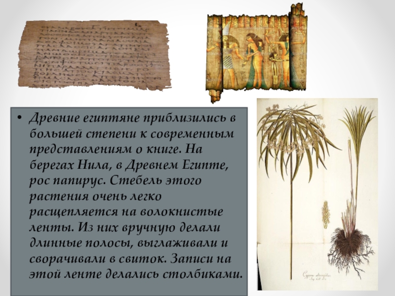Слайд 5Древние египтяне приблизились в большей степени к современным представлениям о книге.