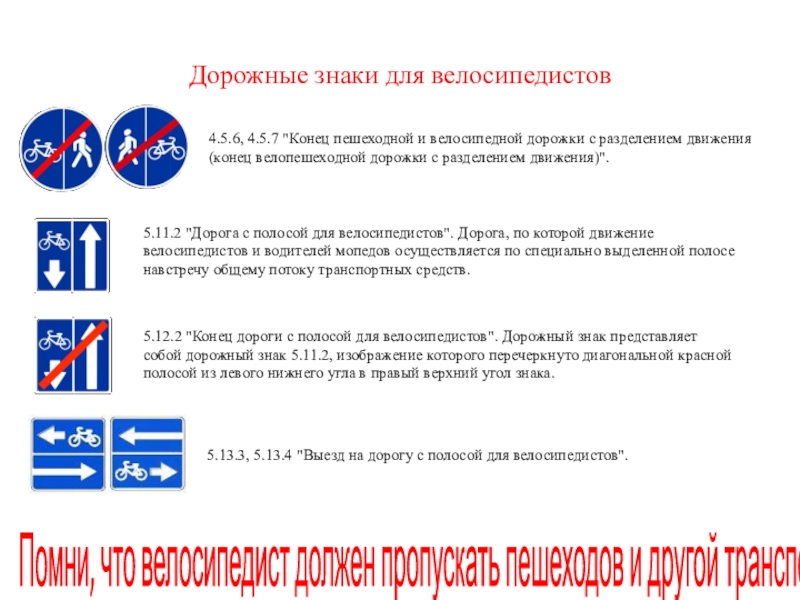 Помни, что велосипедист должен пропускать пешеходов и другой транспорт