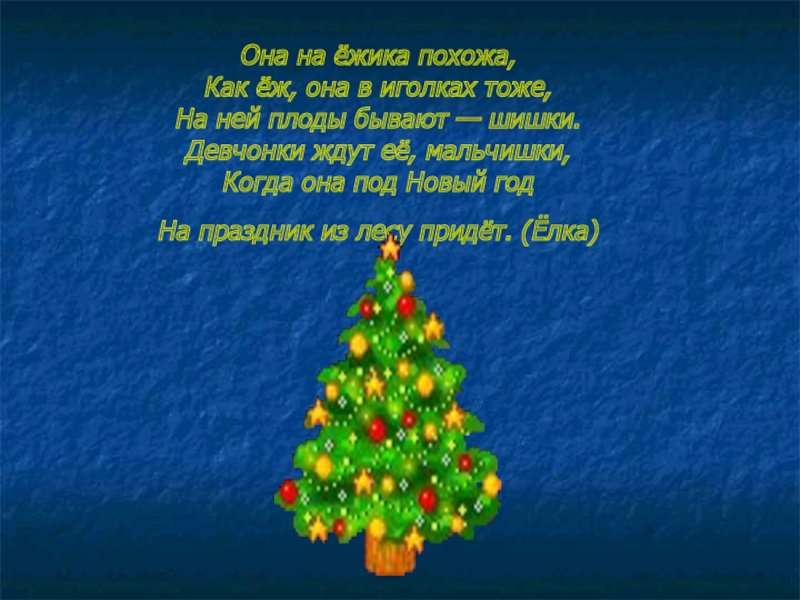 бывают — шишки. Девчонки ждут её, мальчишки, Когда она под Новый год На праздник из лесу придёт. (Ёлка)